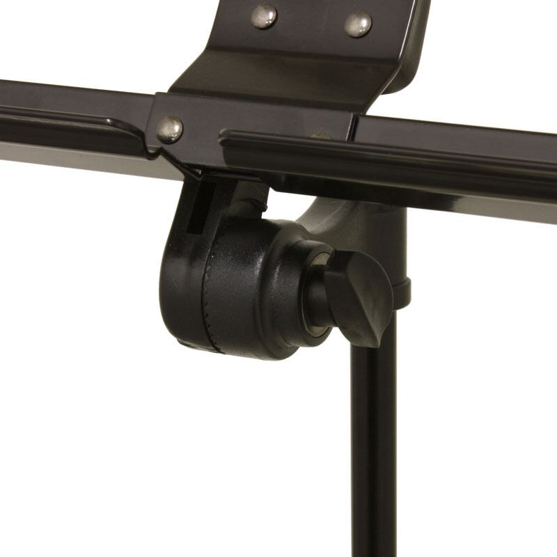 譜面台の高さ調整 (510 - 1230mm)には、より使い勝手のいいロックシステムを採用しています。一般的な譜面台のようにネジ留めタイプではないので、パーツを失くしたり消耗する心配はありません。